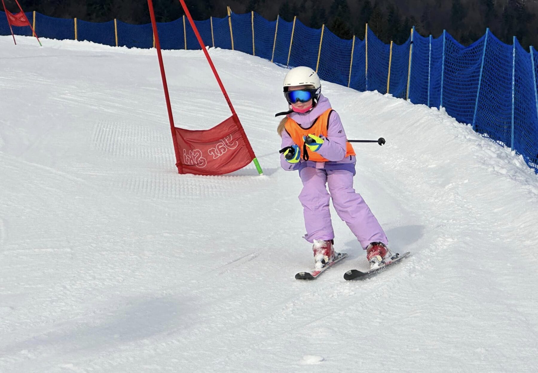 Wszyscy jeżdżą w jednorodnych kamizelkach udostępnianych uczestnikom na czas trwania zajęć. Obowiązkowo jeździmy w kaskach narciarskich.